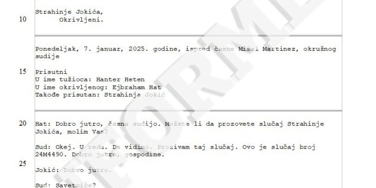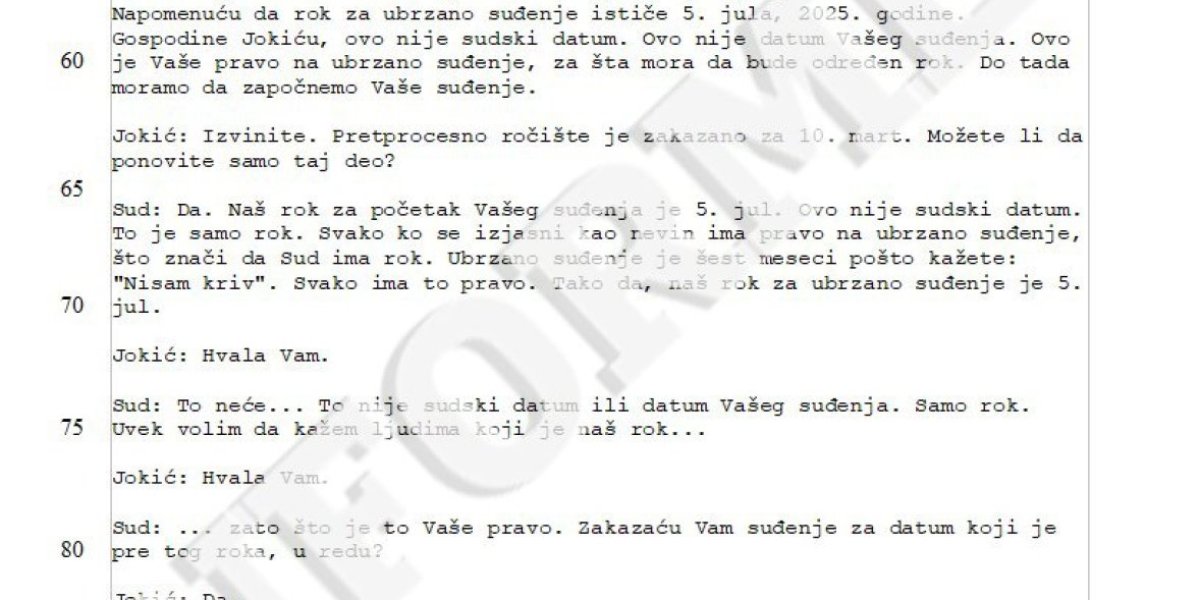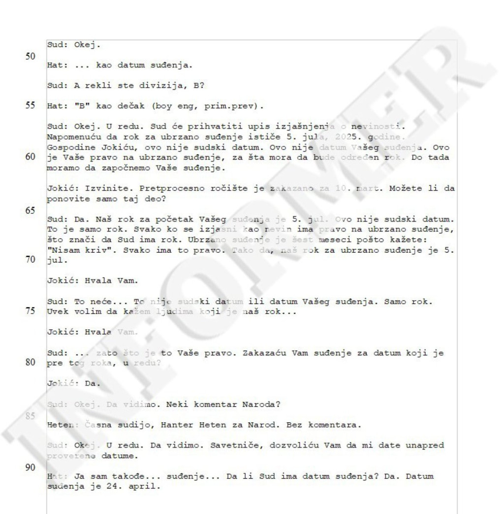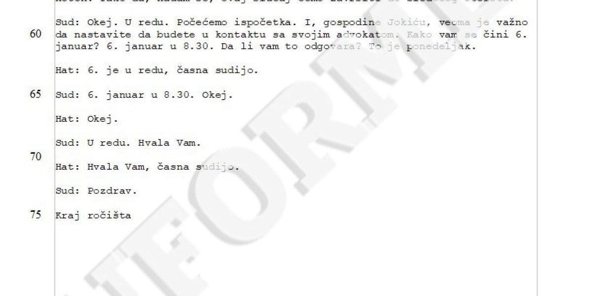 Zahvaljujući tome, došli smo do informacija o imenu žrtve, datumu početka suđenja, o posebno zahtevu okrivljenog Jokića i o mnogim drugim stvarima.