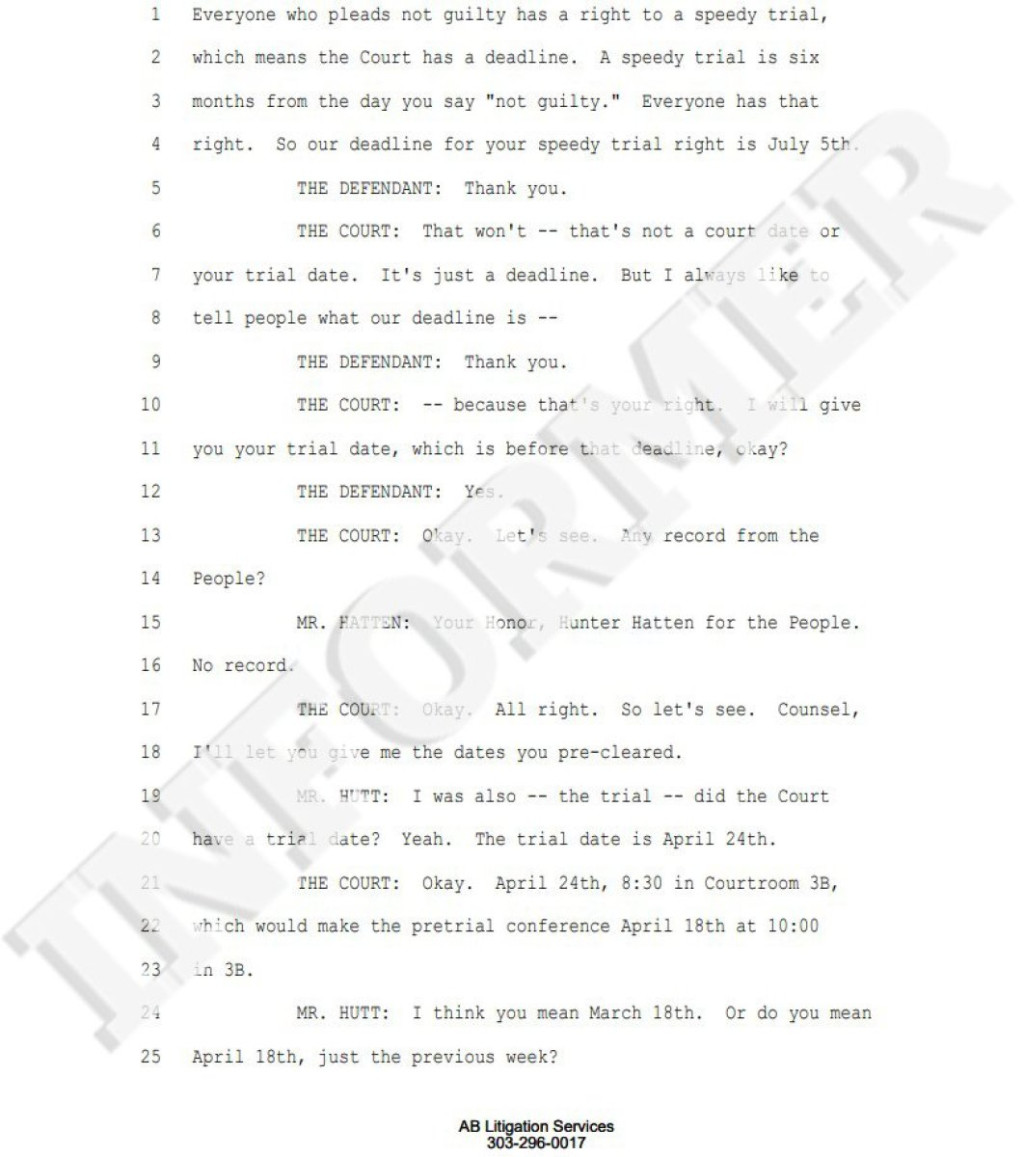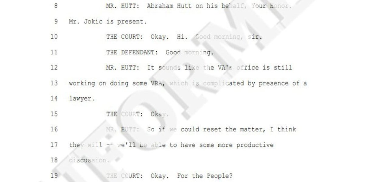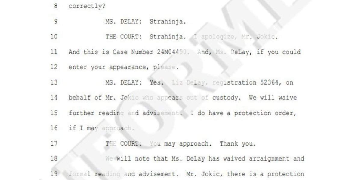 Prvi zahtev koji je stariji Jokić podneo je da se održi takozvano "ubrzano suđenje", koje obavezuje da se proces održi u roku od najviše 70 dana otkako se izjasnio nevinim. Zanimljivo, ukoliko se ne ispoštuju rokovi ubrzanog suđenja, slučaj može da bude čak i odbačen!
