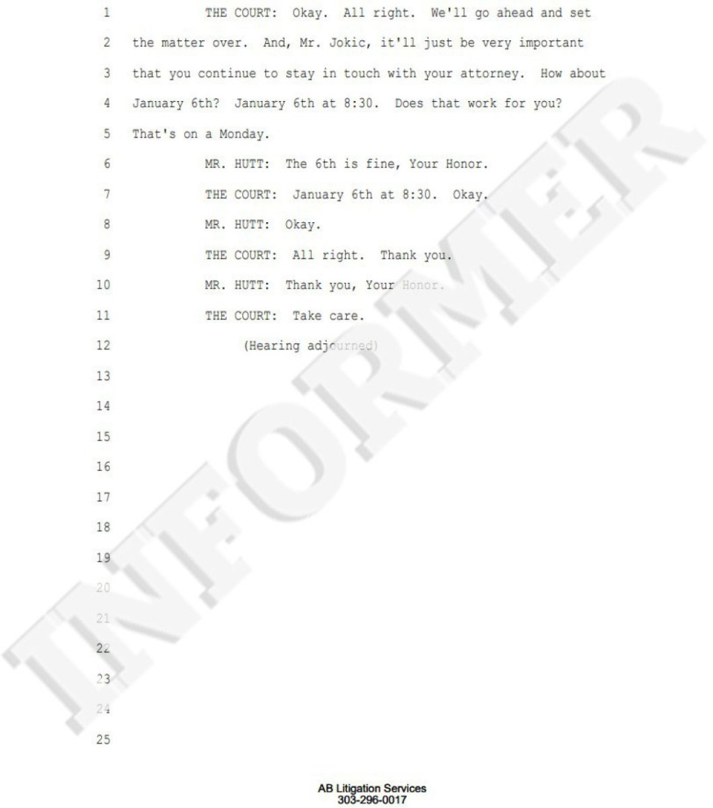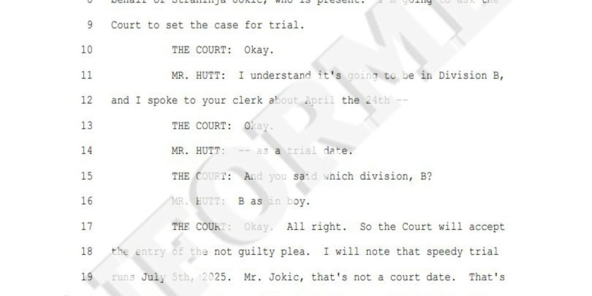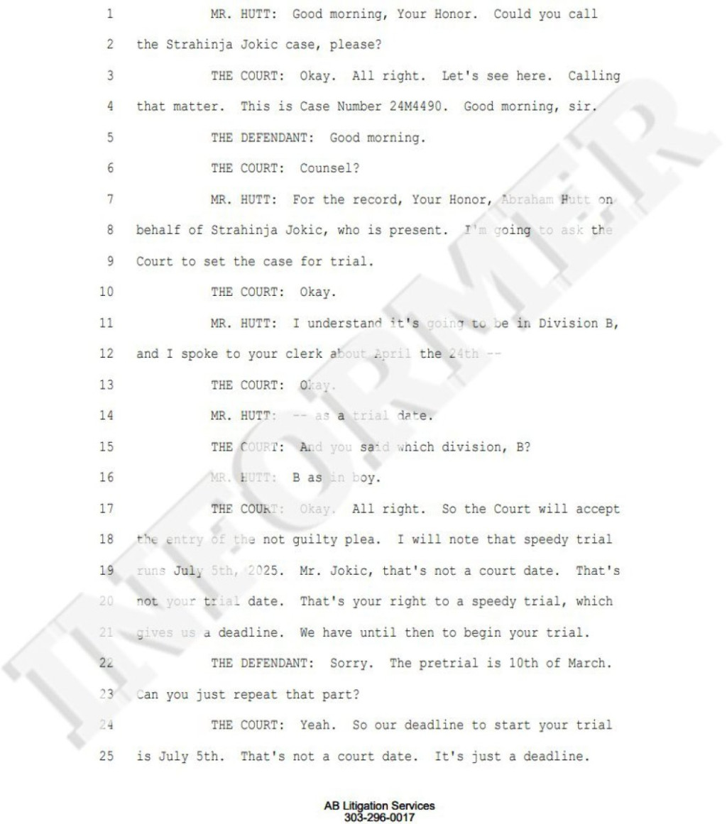 Suđenje Strahinji Jokiću je zakazano za 18. april od 10 časova u Okružnom sudu u Denveru, dok će se podnošenje predloga održati 17. marta od 8.30.
