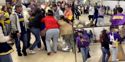 (VIDEO) Mučni snimci iz SAD! Žestoka tuča navijača Denvera i Lejkersa, žena na podu, ovo se ne pamti