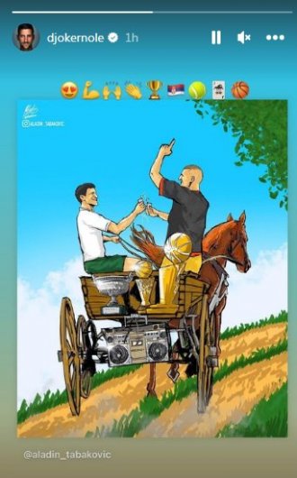 Novaku se, ta slika, očigledno veoma svidela, pa je podelio na svoju instagram priču, uz mnogo emotikona, među kojima su teniska i košarkaška lopta, pehari, ali i zastava Srbije.