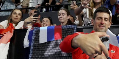 U jednom trenutku, nakon što se potpisao, srpski as je poljubio srpsku zastavu, a sa tribina se čulo: "Bravo majstore". Navijači su bili u transu!