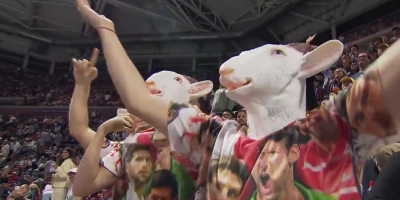 Naime, dvojica Novakovih fanova na tribine su došli u majicama na kojima je lik srpskog tenisera, dok su na glave stavili masku koze.