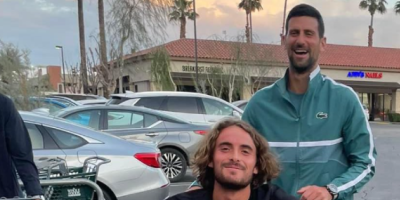 Novak Đoković se jako dobro zabavlja u Sjedinjenim Američkim Državama, a sada je fotografisan kako vozi svog kolegu Stefanosa Cicipasa u kolicima za prodavnicu.