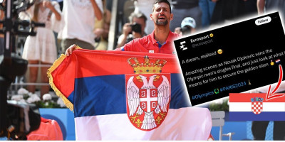 Nalog čuvenog sportskog kanala Eurosport na društvenoj mreži "X" objavio je snimak pobede Novaka Đokovića i uz njega umesto srpske stavio hrvatsku zastavu!