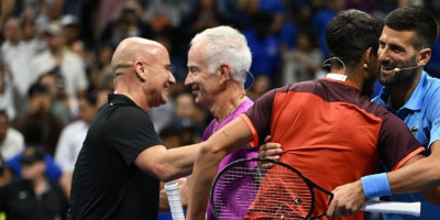 Španac Karlos Alkaraz i čuveni američki teniser Andre Agasi nisu uspeli da savladaju Noleta i Mekinroa, pa su na kraju pružili ruku Srbinu i Amerikancu koji su ih pobedili sa 10:8 u meču koji je igran do super taj-brejka.