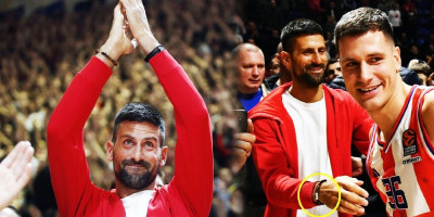 Novak je između ostalog gledao evroligaški duel Crvene zvezde i Albe. Nije moglo da prođe nezapaženo da je na desnoj ruci nosio neobičnu narukvicu. Pored brojanice se nalaze tri slova: "J", "S" i "T".