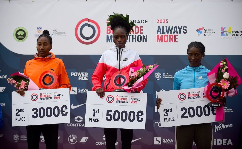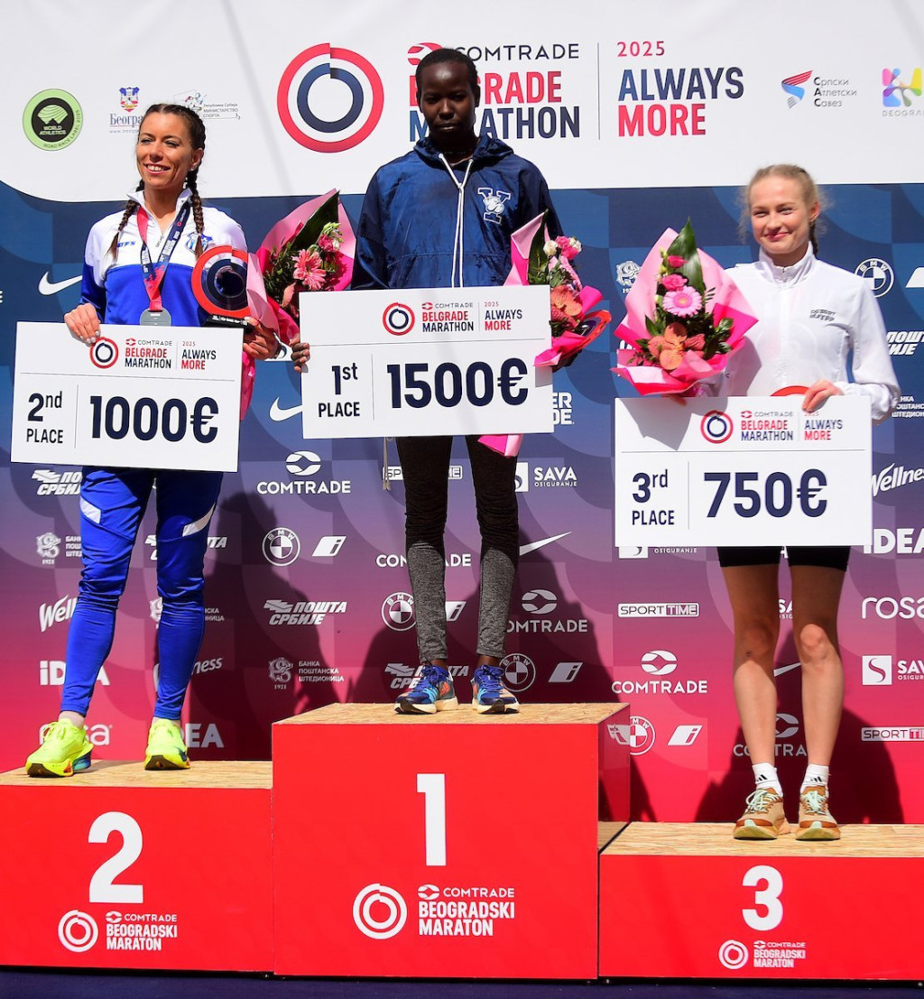 Kenijka Debora Sang, pobednica Beogradskog maratona, nagrađena je sa 5.000 evra, koliko je pripalo i pobedniku Žilber Kipleting Čumbi.