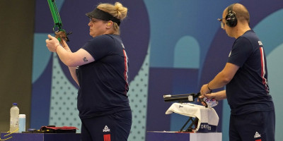 Zlatnu medalju u ovoj disciplini osvojili su kineski strelci Kjianksun Jao i Kai Hu, koji su u finalu savladali par iz Jermenije.