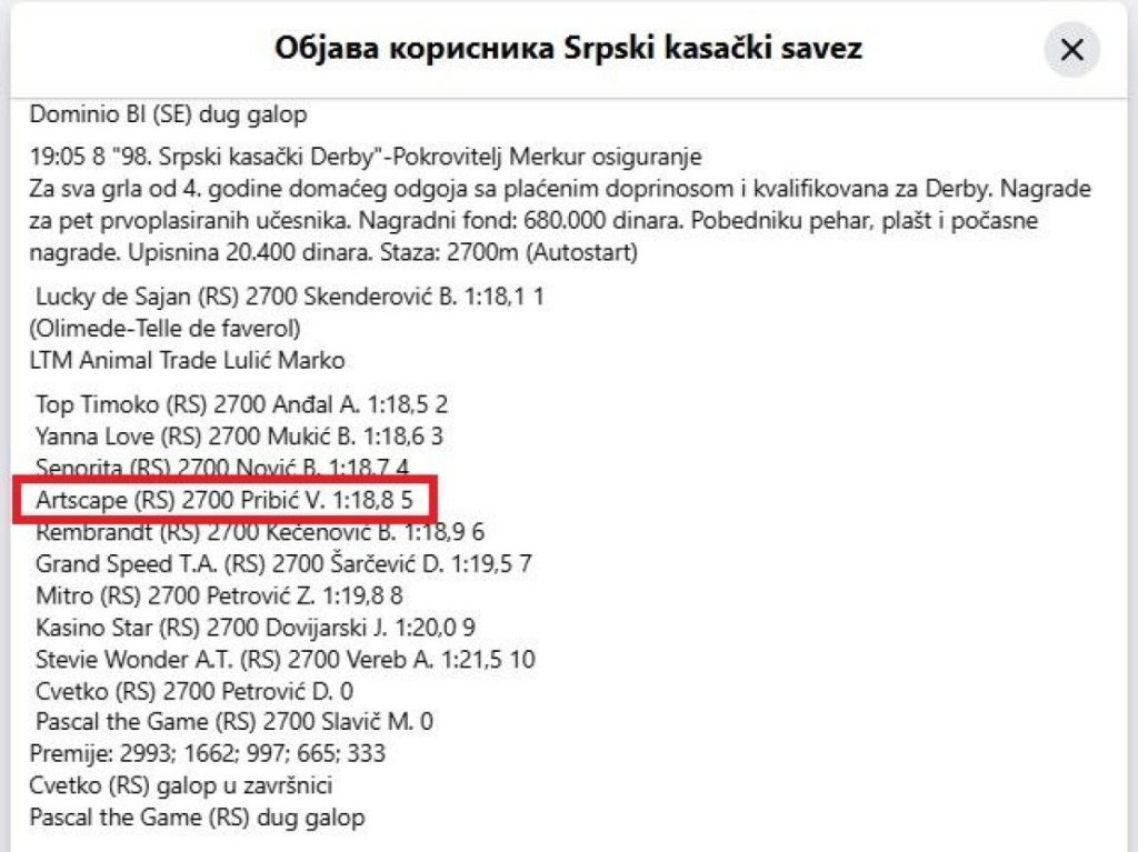 Foto: Printsreen Facebook/Srpski kasački savez