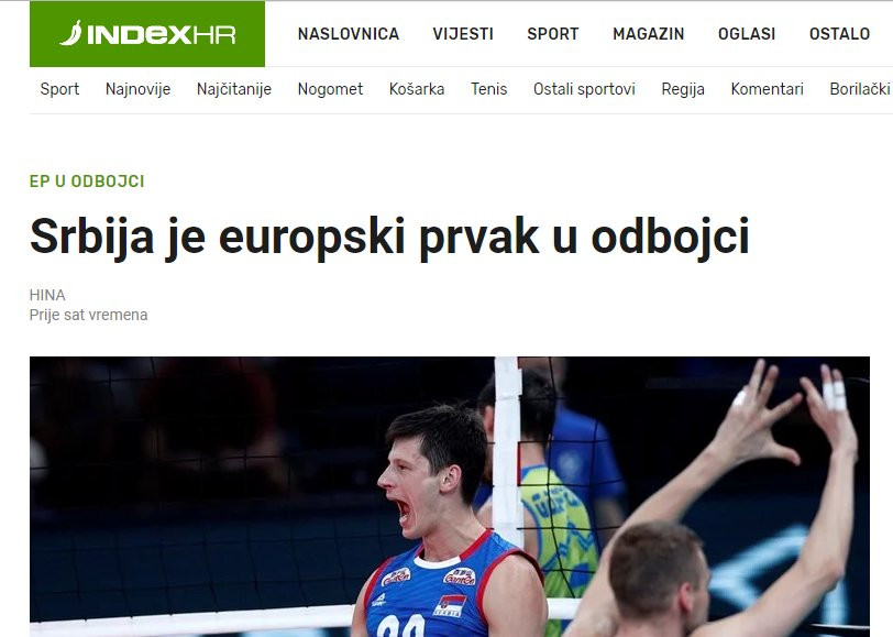 Hvratski "index.hr" kao i "jutarnji.hr" takođe pišu o trećem zlatu Srbije na EP, dok podgoričke "Vijesti" navode da su "Slovenci pretili samo set i da je posle osam godina Srbija ponovo na krovu Evrope", ističući da je Srbija je potvrdila dominaciju u odbojci na Starom kontinentu, pošto su ovog meseca zlato na EP osvojile i odbojkašice Srbije.
