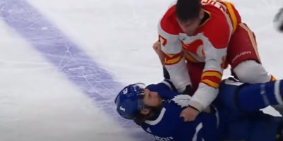 On je prvom periodu duela njegovog Kalgarija protiv Toronta izazvao tuču! Lučić je ušao u klinč sa Skotom Saburinom, da bi nešto kasnije završio na ledu.