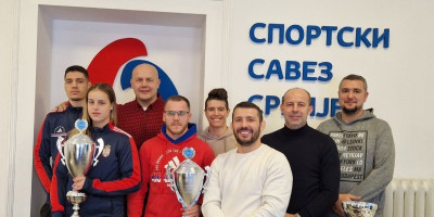 Reprezentativci Srbije u savateu nakon osvojene dve medalje na Svetskim igrama borilačkih sportova bili su gosti Sportskog saveza Srbije.