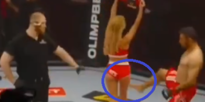 Dok je platinasta lepotica Marija šetala i izazovno njihala telom, pomerajući sa kuka ka kuk broj koji predstavlja koja je runda na redu, Iranac se nervirao što ne ubrza i šutnuo ju je u guzu. Odmah je reagovao sudija, suderišuću mu da to nije u redu.