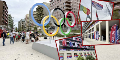 Posle svega dva minuta hoda, tamo smo zatekli sjajan prizor! Zastave Srbije raspoređene su po svim terasama u delu zgrade gde su smešteni naši. I to ne samo sa spoljašnje strane, koja izbija na ulicu, već i sa one unutrašnje, koja nije vidljiva ako ne uđete u kompleks i zavirite malo bliže. Valjda to dovoljno govori koliko su naši olimpijci naoštreni za ovo takmičenje i koliko im je stalo da obraduju naciju i donesu neku od medalja.