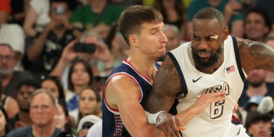 Lebron Džejms je večeras najraspoloženiji ne za košarku nego za kavgu, pa se u jednom trenutku pokoškao sa kapitenom "orlova" Bogdanom Bogdanovićem.