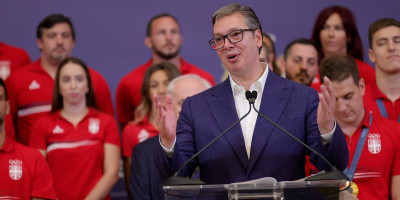 Dočekao ih je u zgradi Predsedništva na Andrićevom vencu. Predsednik je jednom po jednom osvajaču medalja, uz nekoliko toplih reči i stisak ruke, čestitao veliki uspeh postignut na Olimpijskim igrama u Parizu. Predsednikov govor oduševio je kako prisutne, tako i milionski auditorijum.