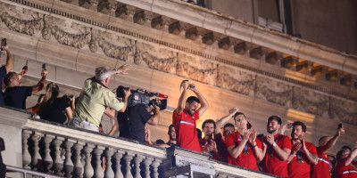 Orilo se "Veseli se srpski rode" sa balkona Starog dvora u Beogradu! Doček naših olimpijaca nije mogao da prođe bez pesme, a osim Danice Crnogorčević, zapevali su srpski teniser Novak Đoković i tekvondistkinja Aleksandra Perišić.