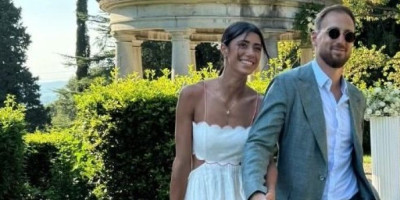 Njen izabranik odlučio se na tamno zeleno odelo, pantalone i sako,uz belu košulju i letnje espadrile na nogama. Naravno, tu su i naočare kako bi fotografija ispala što bolja.