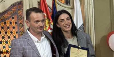 Heroina atletike, Ivana Španović, u društvu svoje majke Vesne i trenera Gorana Obradovića, uveličala je svečanu akademiju u prepunoj Baroknoj sali Gradske kuće.