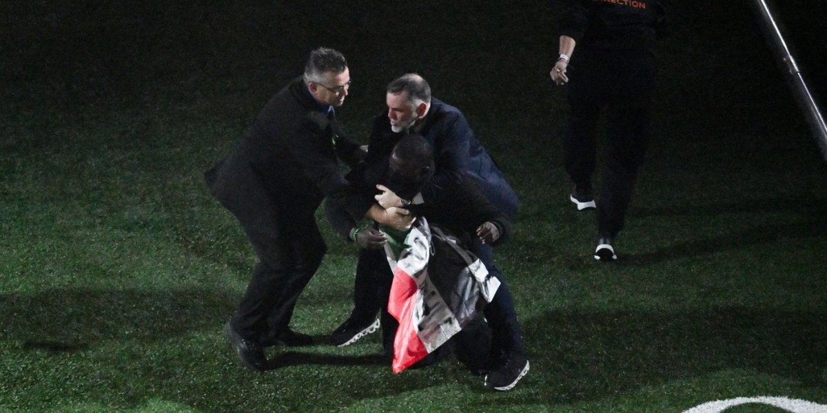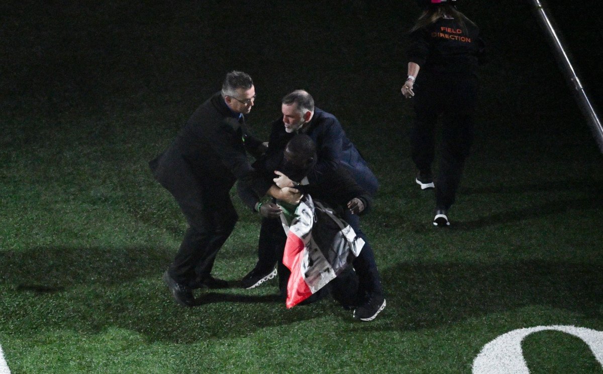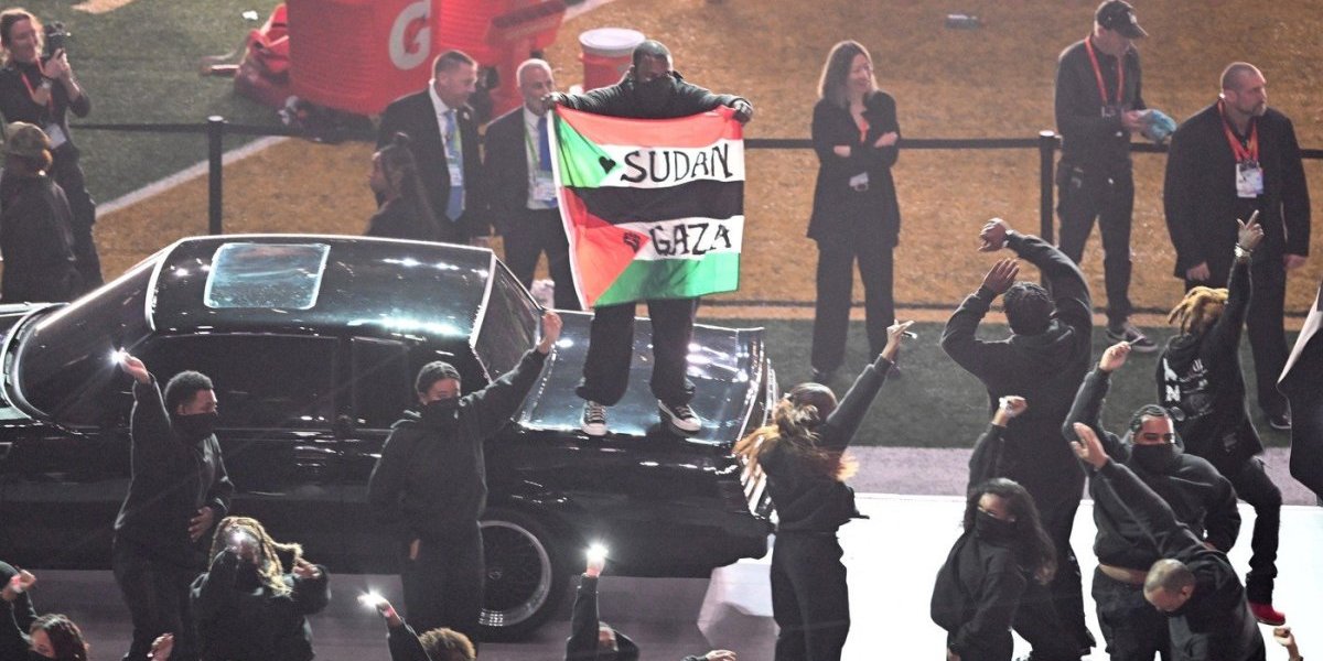 Muškarac koji je bio deo nastupa Kendrika Lamara na finalu NFL-a priveden je nakon što je podigao sudansku i palestinsku zastavu, na kojoj je bilo nacrtano srce.