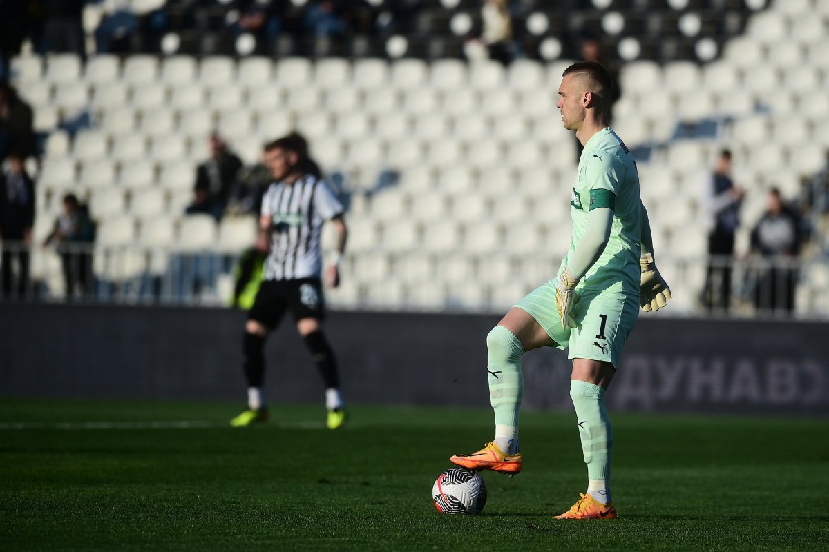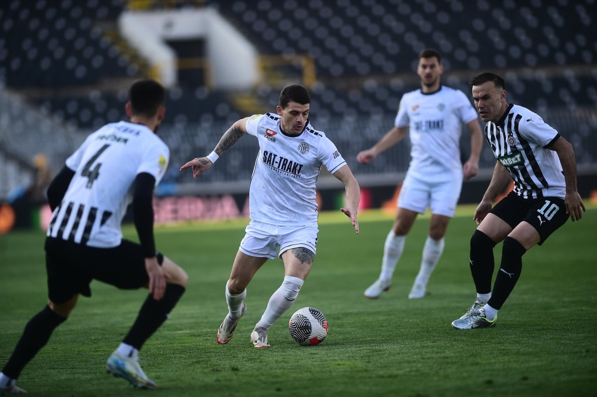 S druge strane, gosti su se postavili disciplinovano, i čekali svoju priliku iz tranzicije. Najopasniji igrač u njihovim redovima bio je upravo makedonski internacionalac Nikola Todorovski, koji je u nekoliko navrata testirao defanzivnu stabilnost crno-belih. Prvo je u 20. minutu umakao svojim čuvarima i uputio udarac koji je završio pored stative, a potom je u 35. minutu ponovo stigao do solidne pozicije, ali je njegov pokušaj završio iznad prečke.