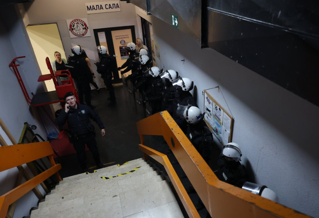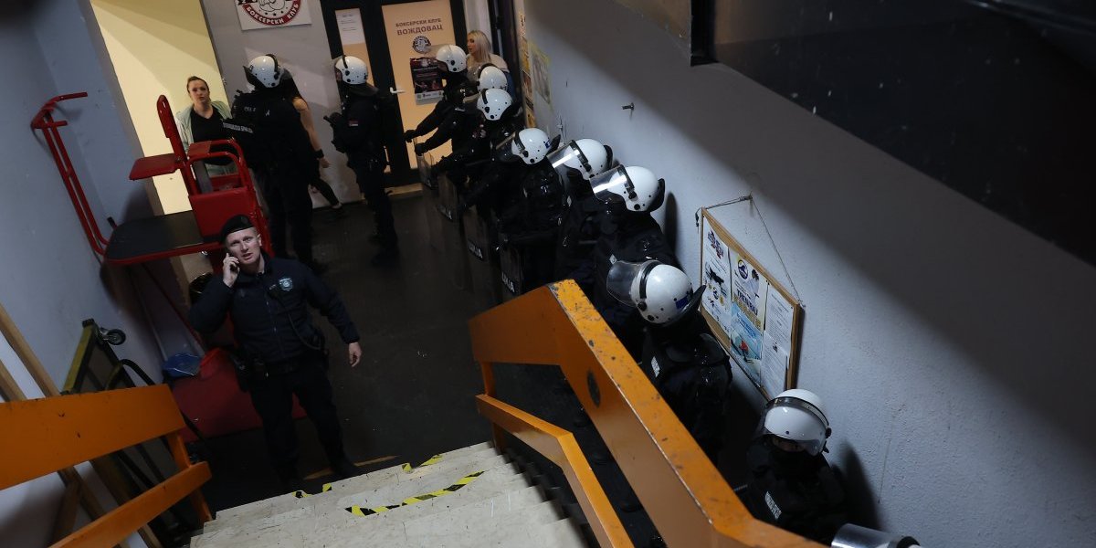"U izjavi koju je dao u prisustvu svog advokata, Aleksandar Jovanović je istakao da je na ulazu u halu na Banjici zaustavljen od strane policijskih službenika, i u eskalaciji koja je potom usledila, kao što se može videti na snimcima koji su se pojavili u javnosti - Jovanović se u jednom trenutku našao na podu", naveli su iz Humske.