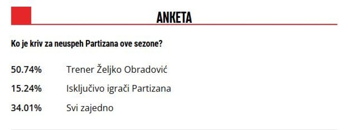 Naime, u ponudi odgovora – trener, igrači ili svi zajedno, najveći broj ispitanika prst je uperio upravo u legendarnog stručnjaka. Uprkos statusu jednog od najtrofejnijih evropskih trenera, brojni navijači (preko 50 odsto) smatraju da je ove sezone podbacio, pre svega u selekciji tima i postavljanju jasnog sistema igre.