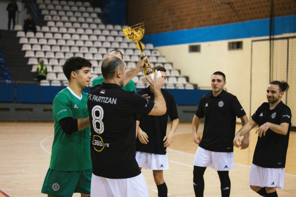 Futsaleri Partizana oprostili su se od navijača pobedom nad ekipom FON Beograd u prijateljskoj utakmici (5:4) i tom prilikom podigli trofej namanjen šampionu Treće lige Beograda.