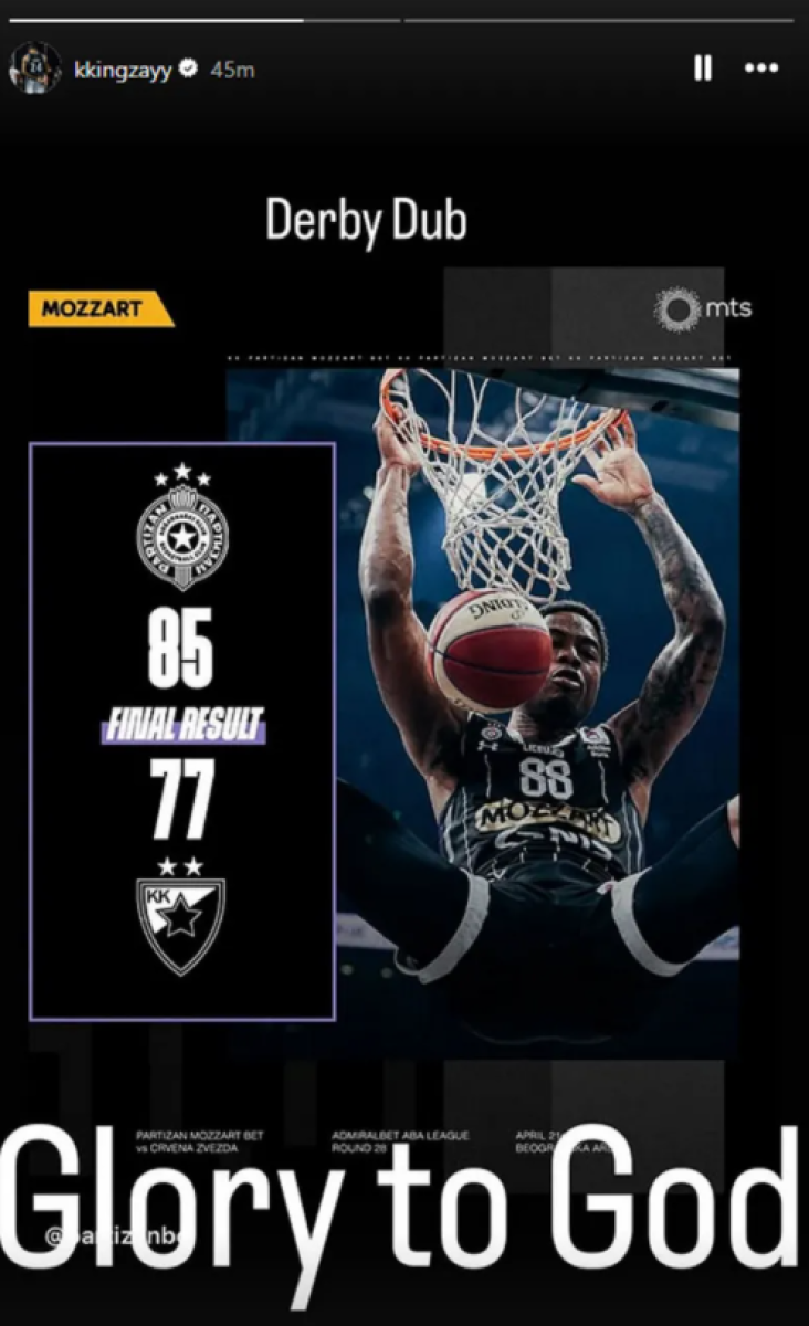 Ajzea Majk, krilni centar Partizana, meč je završio sa pet poena i šest skokova. Nakon susreta, objavio je fotografiju na zvaničnom Instagram nalogu kluba i preko nje napisao: “Slava Bogu”.