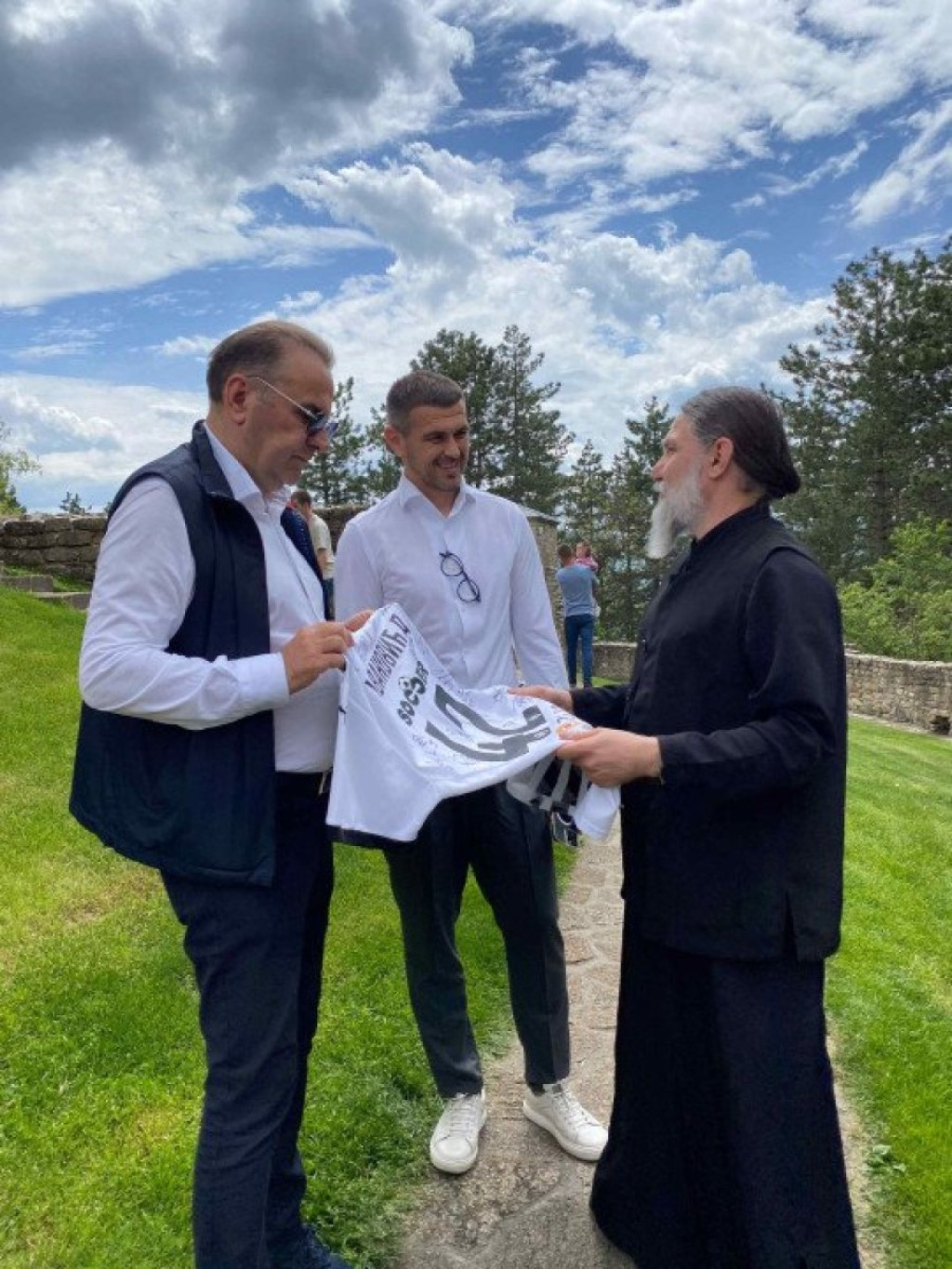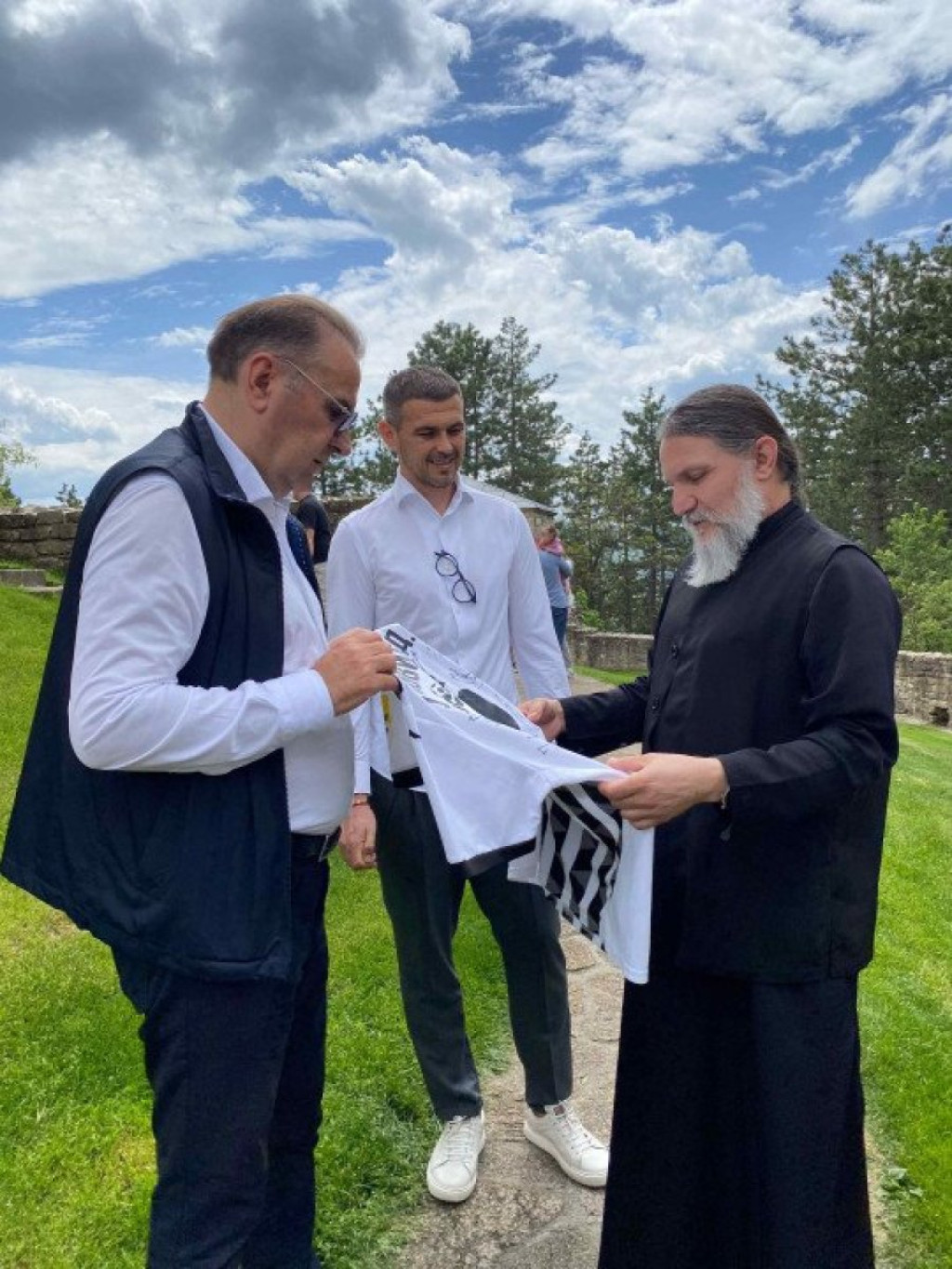 Čelnici Partizana posetili manastir Đurđevi stupovi i uručili dres za humanitarnu akciju