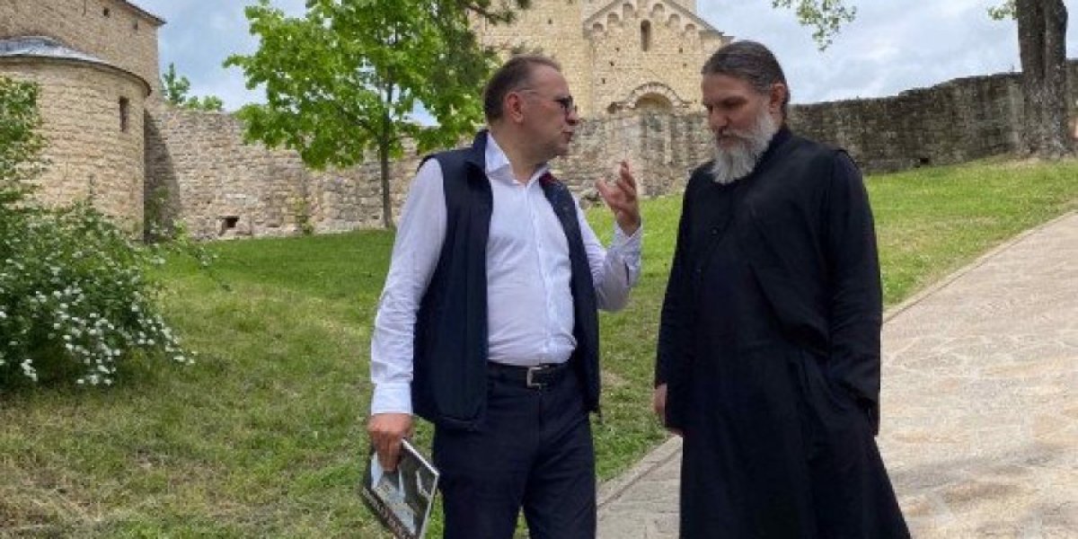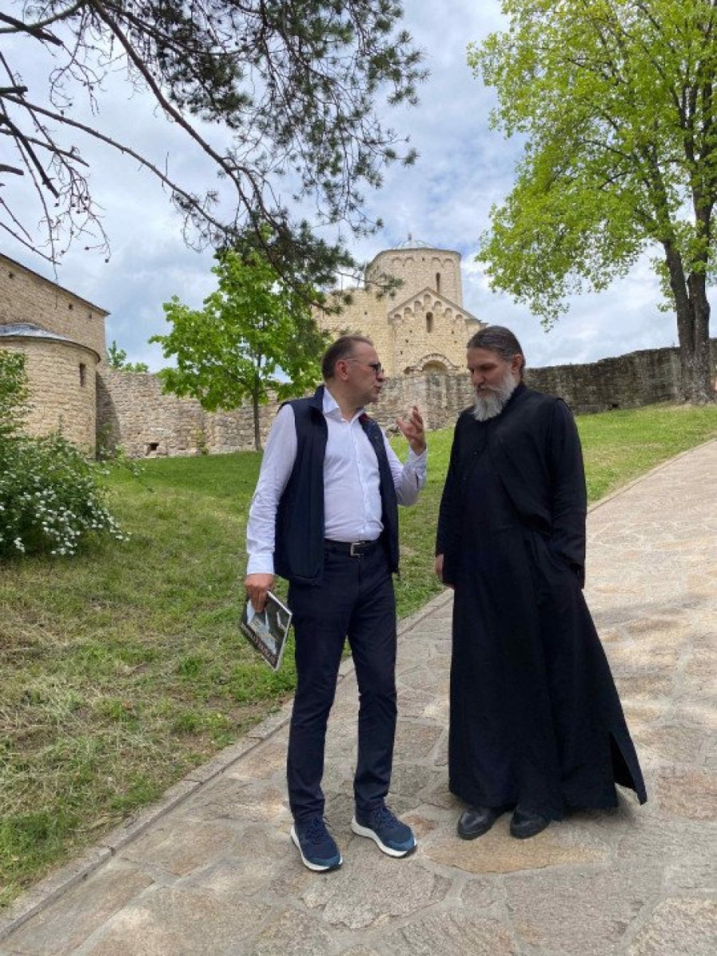 Predsednik Privremenog organa FK Partizan Rasim Ljajić i čelnik kluba Danko Lazović posetili su manastir Đurđevi stupovi uoči prvenstvene utakmice u gostima protiv Novog Pazara.
