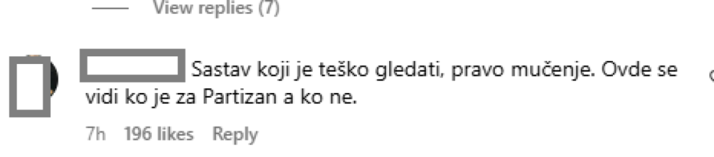 Navijači su razočarani nastupnom i odnosom prema dresu igrača Partizana na ovom meču. Takođe, smatraju da niko ko nosi crno-beli dres ne sme za neko takmičenje da kaže da nije važno, jer navijače to ne zanima.