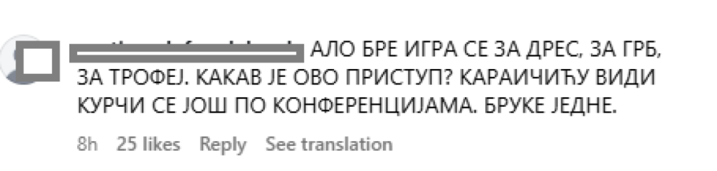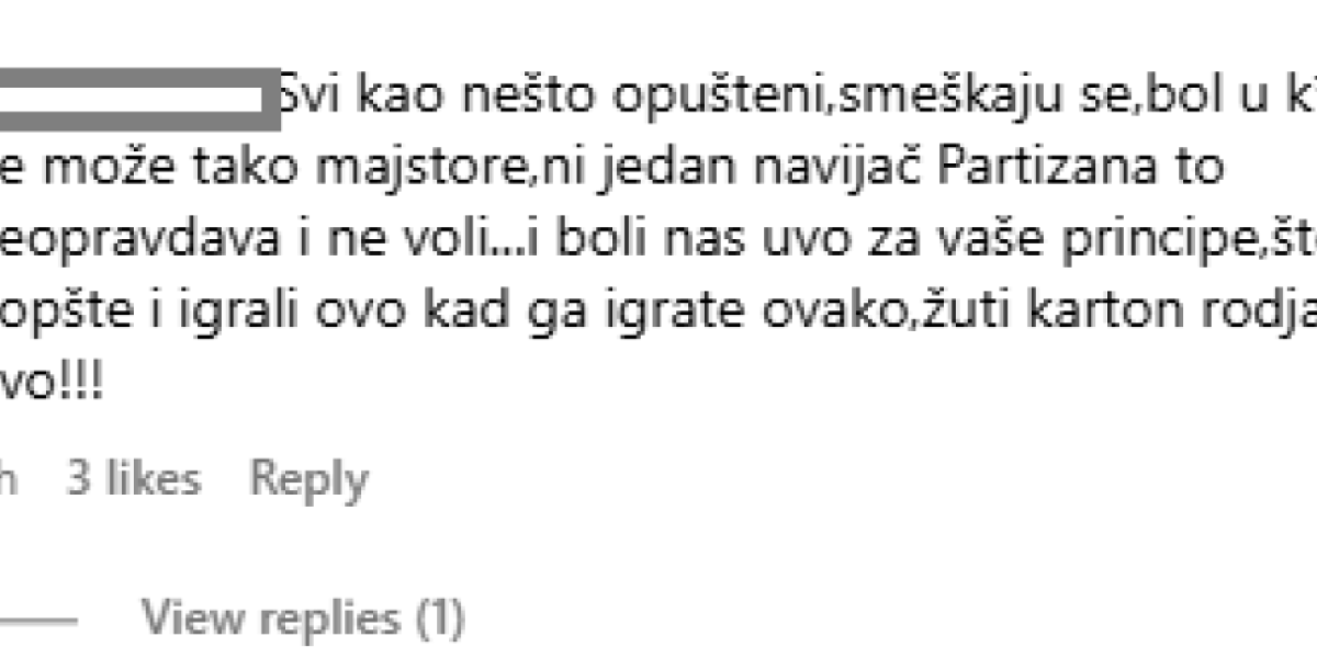 "Možemo mi da pričamo šta hoćemo, ali ovo je teško brukanje i kajanje svetog imena Partizan. Ne razumem taj narativ ovo takmičenje nas ne interesuje... Navijače može da ne interesuje, ali klub ako ga igra mora da ga igra u fulu, pa kakav god rezultat bio".
