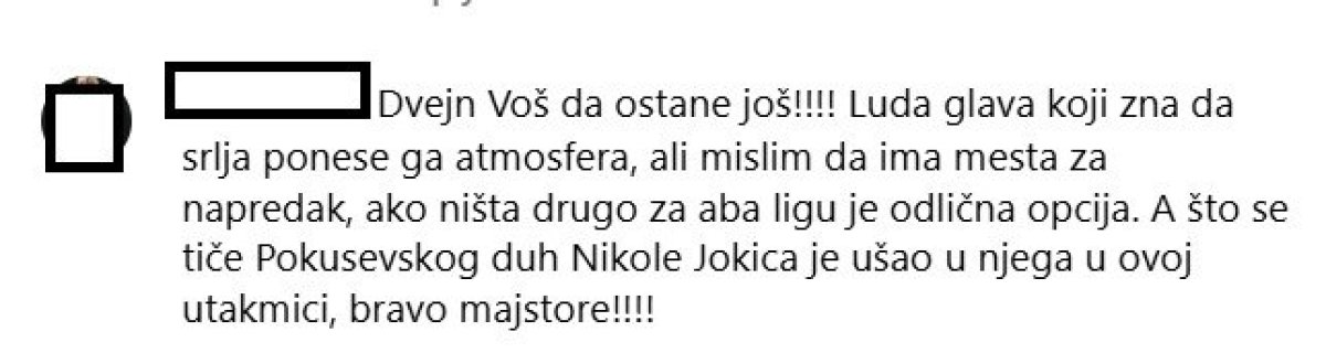 "Dvejn Voš da ostane još! Luda glava koji zna da srlja ponese ga atmosfera, ali mislim da ima mesta za napredak, ako ništa drugo za ABA ligu je odlična opcija. A što se tiče Pokuševskog duh Nikole Jokica je ušao u njega u ovoj utakmici, bravo majstore!", Bravoooo momci utorak se slavi titula napred", "Kakva timska igra, kako spremljen meč, ovo je bilo uzivanje za gledanje", samo su neki komentari navijača crno-brlih posle trijumfa.