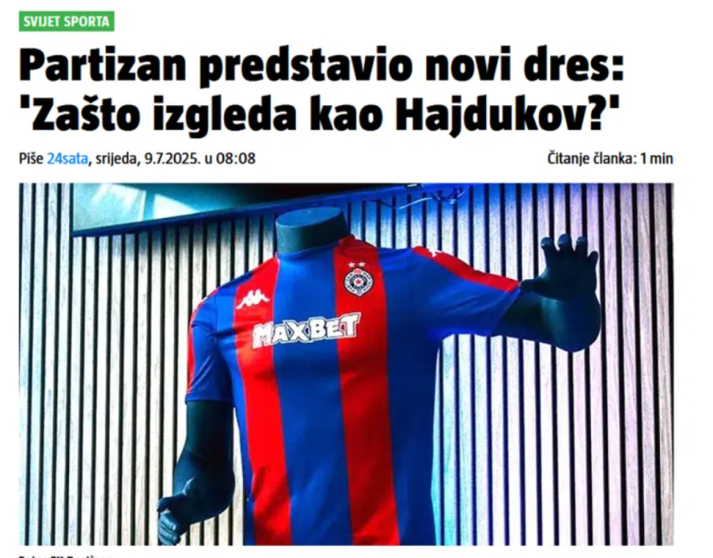 Hrvatski mediji takođe pišu o tome kako je Partizan, u svojim ranim godinama igrao u crveno-plavim dresovima, dok se crno-beli identitet ustalio tek krajem pedesetih godina. Navodno, uz uticaj tadašnjih funkcionera, pa čak i bivšeg predsednika Jugoslavije Franje Tuđmana, i uz ideju legendarnog Stjepana Bobeka.
