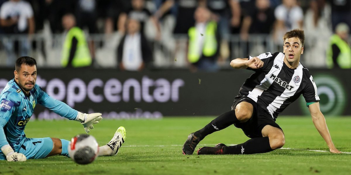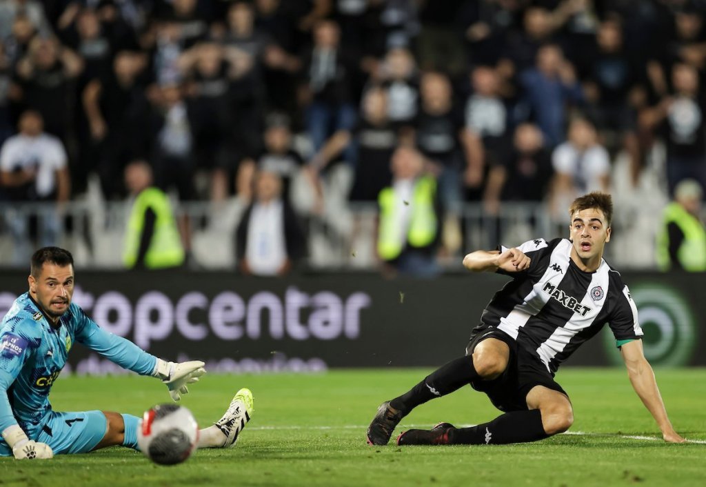 5. minut - Kakva šansa za Miloševića! Napadač Partizana je promašio zicer. Prvo je šut Vukotića bio blokiran, a onda je lopta došla do napadača crno-belih koji iz izgledne prilike nije uspeo da postigne gol.