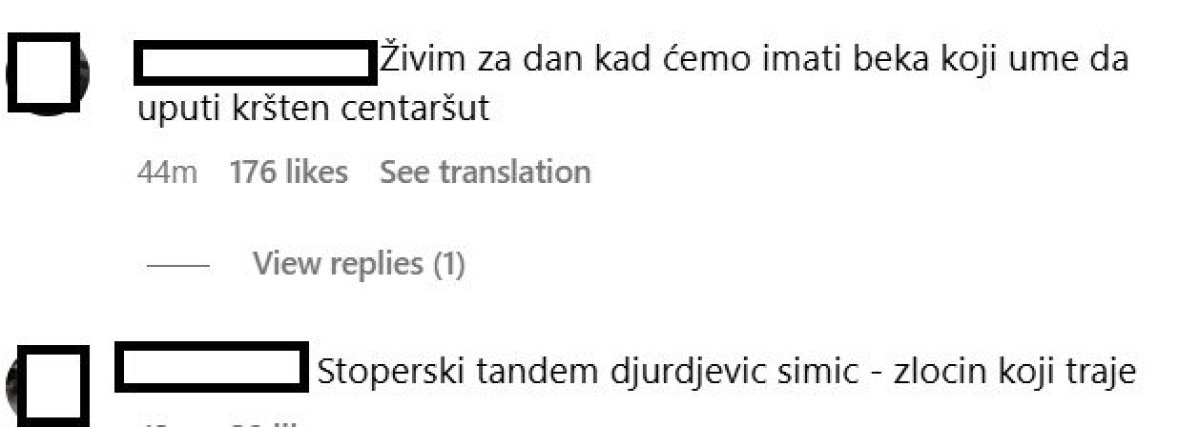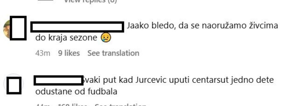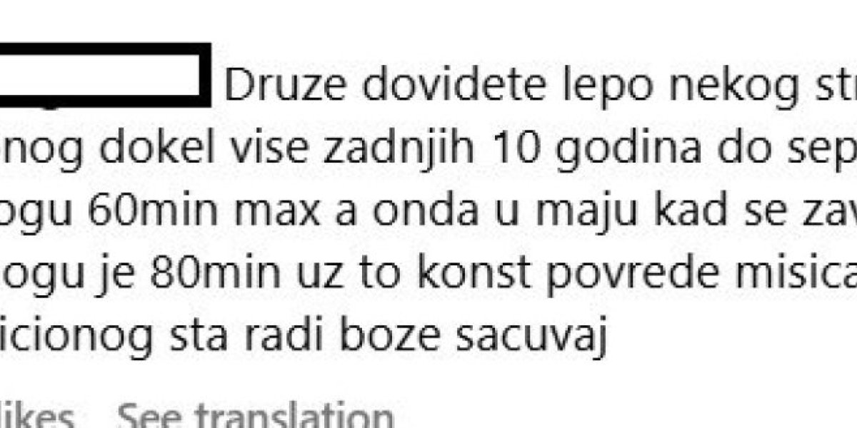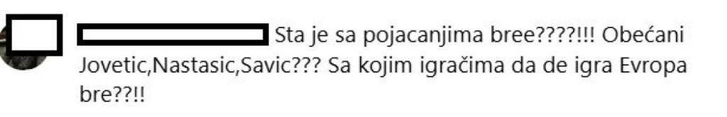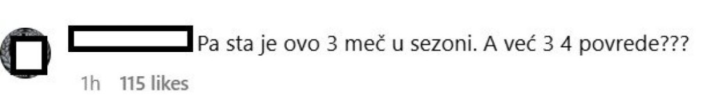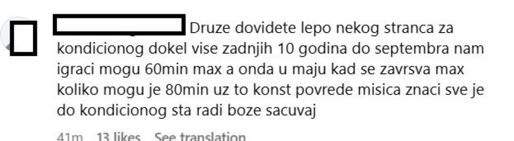 "Još sad treba otpustiti kondicione trenere", "Opet povreda sta je ovo", "Druže dovidete lepo nekog stranca za kondicionog dokle više zadnjih 10 godina do septembra nam igrači mogu 60 min maksimalno a onda u maju kad se zavrđava maksimalno koliko mogu je 80 minuta uz to konstantne povrede mišića, znači sve je do kondicionog šta radi bože sačuvaj".