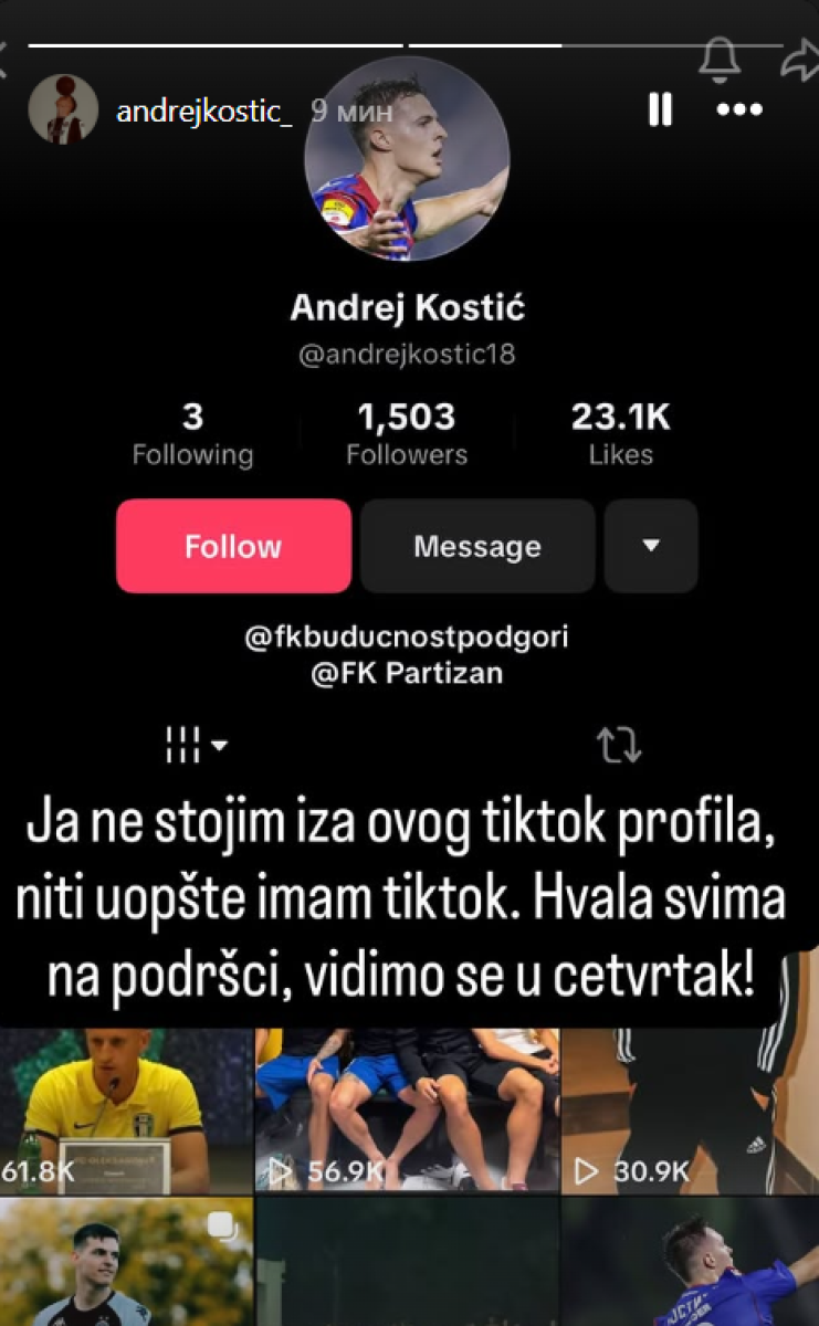 "Iako su neki mediji preneli informaciju da je naš prvotimac Andrej Kostić na društvenim mrežama podelio sadržaj koji je, zbog situacije u Ukrajini, izazvao pažnju naše, ali i javnosti u Ukrajini i Rusiji, obaveštavamo vas da profil i vlasnik profila nemaju nikakve veze sa fudbalerom Partizana", poručeno je iz Humske.