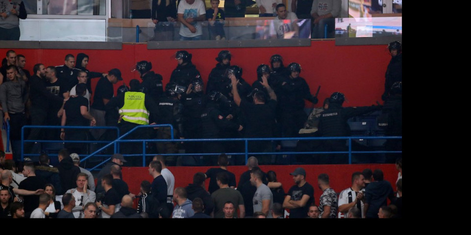 Na tribini na kojoj je smeštena frakcija "Partizanovci" došlo je do masovne tuče. Nastao je opšti haos, a brutalan okršaj zaraćenih frakcija potrajao je nekoliko minuta.