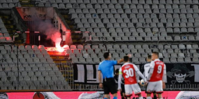 Najvatrenije pristalice Partizana su došle do južne tribine, niko ne zna kako su ušli na stadion, samo su upalili i bacili dve ili više baklji da gore za Irineja.