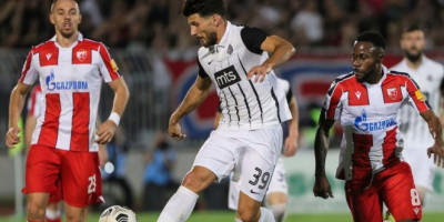 Fudbaleri Crvene zvezde remizirali su sa Partizanom 1:1 (0:1) u devetom kolu Superlige Srbije