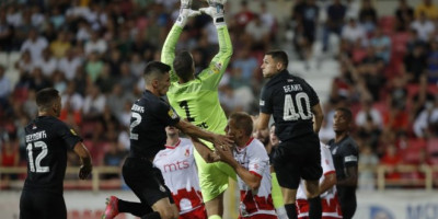 45+4. minut - Slobodan udarac za Marjanovića iskosa kod gol-aut linije i odlična intervencija Stevanovića.