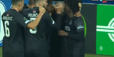 U prvom poluvremenu, igrači Slovačkog su postigli dva gola, a Partizan je morao da nastavi utakmicom manje zbog crvenog kartona Belića.