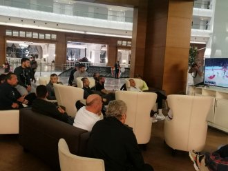 Jokanović je iskoristio priliku da u društvu ekspredicijie crno-belih pogleda evroligaški košarkaški obračun večitih, u kome su se sastali Crvena zvezda i Partizan.