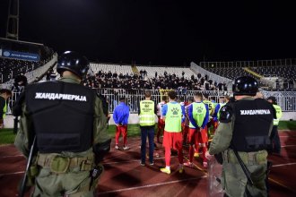 Meč na Banovom brdu je prekinut nakon dešavanja na tribinama, a iako je bilo planirano nije nastavljen dan kasnije.