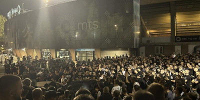 Nekoliko hiljada "grobara", koji neće pratiti utakmicu sa Nordsjelandom se okupilo ispred stadiona i bez prestanka vređaju generalnog direktora kluba Miloša Vazuru i traže njegovu ostavku.