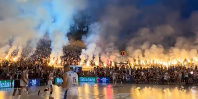 U drugom poluvremenu navijači Partizana napravili su veličanstvenu bakljadu na sve četiri strane stadiona ...