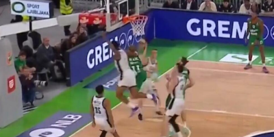 Košarkaš Partizana je prilikom pokušaja da izblokira Jaku Blažiča udario Slovenca u glavu.