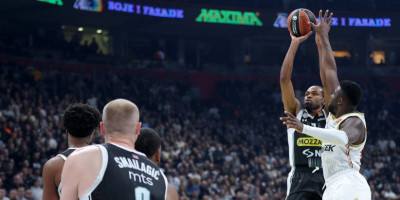 30. minut - Tri pokušaja za tri poena u istom napadu Partizana i sva tri promašaja. Promašuje i Džejms. Na kraju ovog dela igre 51:51.